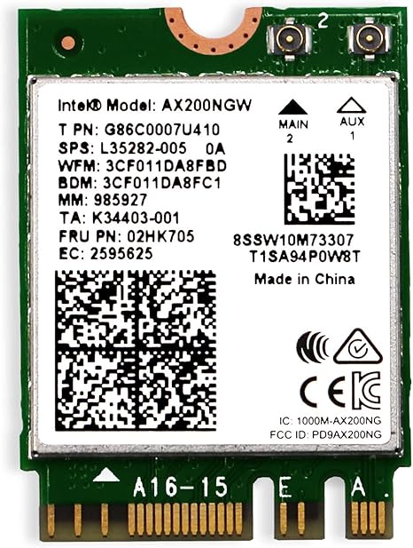 Questo è ciò che dice il produttore:A proposito di questo articolo Questo si adatta al tuo . Assicurati che vada bene inserendo il numero del modello. 1.Modello: Intel WiFi 6 AX200NGW; Utilizzo: per la scheda madre con CPU Intel, lo slot di rete M2 con Windows 10 a 64 bit e PC Linux; Fattori di forma: chiave NGFF M2 2230 A/E; 2. Max velocità di trasmissione dati: 802.11AX: 2,4 GHz 574 Mbps (40 MHz) o 5 GHz 2,4 Gbps (160 MHz). 802.11 AC: 2,4 GHz 300 Mbps (40 MHz) o 5 GHz 1733 Mbps (160 MHz). Confezione: busta in PE, nessun CD del driver all'interno. 3. Dimensione del prodotto: 22X30X2.4 mm; Peso dell'articolo: 2,3 g; Crittografia di sicurezza wireless: WEP a 64 bit e 128 bit, AES-CCMP e TKIP. 4. Standard di lavoro della rete wireless: IEEE 802.11 a/b/g/n/ac; Modalità di lavoro Bluetooth: Bluetooth 5.1,5.0, 4.2, 4.0, 3.0, 2.1. 5.Sistema compatibile: Windows 10 a 64 bit, è necessario scaricare e installare il driver di rete e Bluetooth sui PC in esecuzione. Linux si prega di fare riferimento alla guida dei siti Intel.Fascia di prezzo